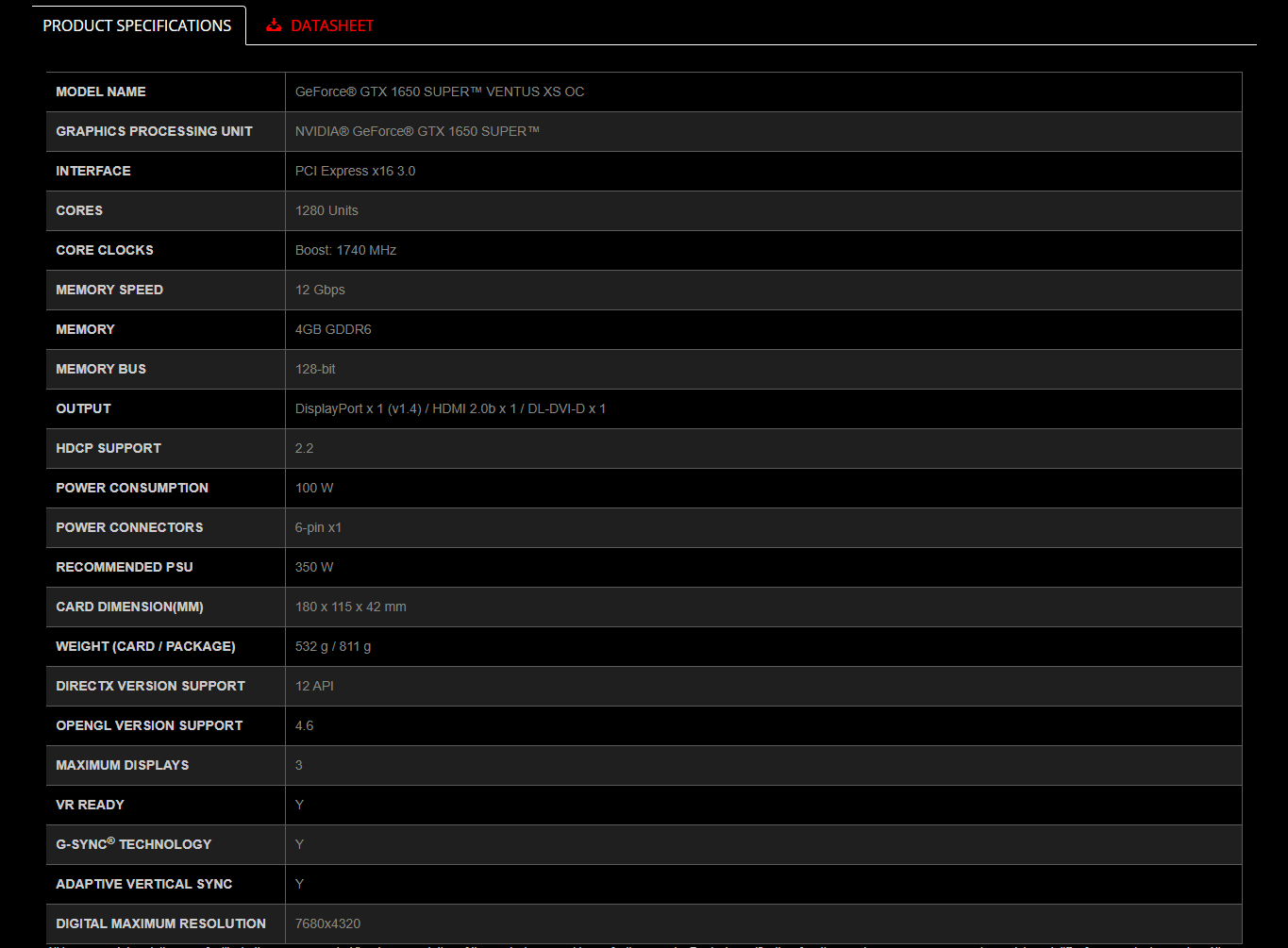 | MPN: | GTX 1650 SUPER VENTUS XS OC Link |