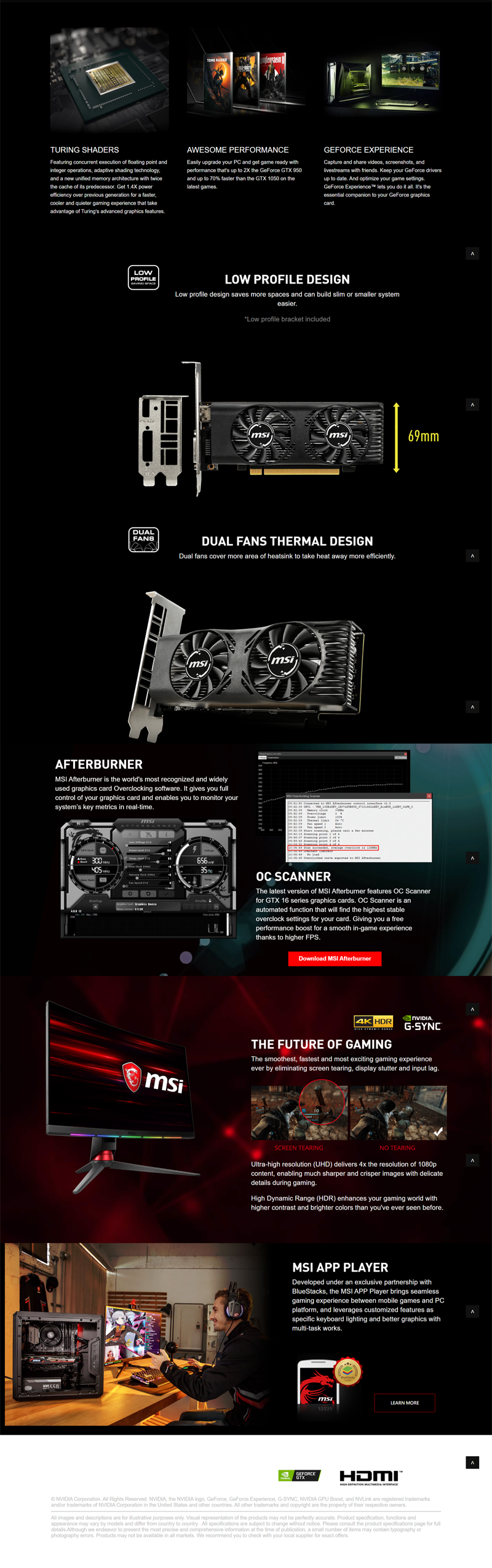 MSI Geforce GTX 1650 4GT LP OC Graphics Card GEFORCE GTX 1650 4GT LP