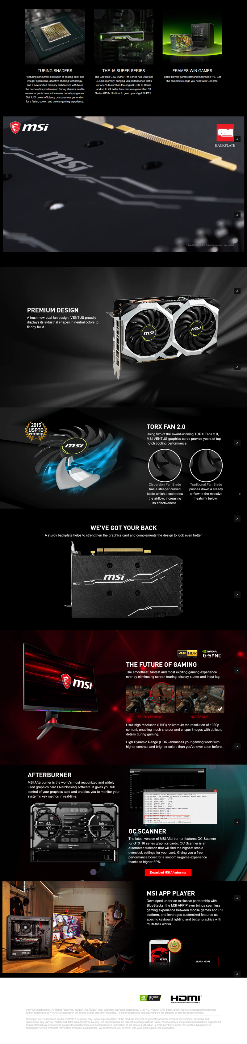 | Manufacturer Part Number: | GEFORCE GTX 1660 SUPER VENTUS XS OC |
