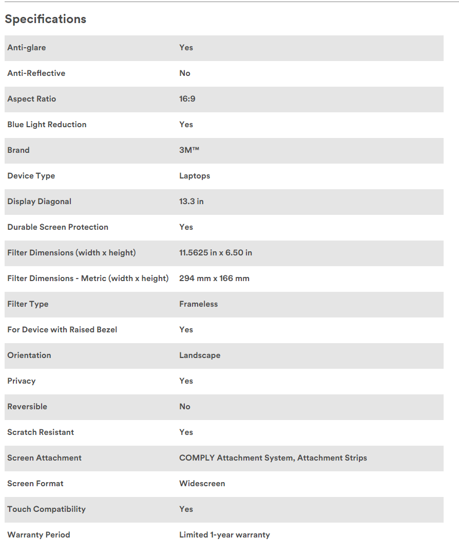 3M Privacy Filter For 13.3" Widescreen Laptop (16:9) With Comply 98044066482