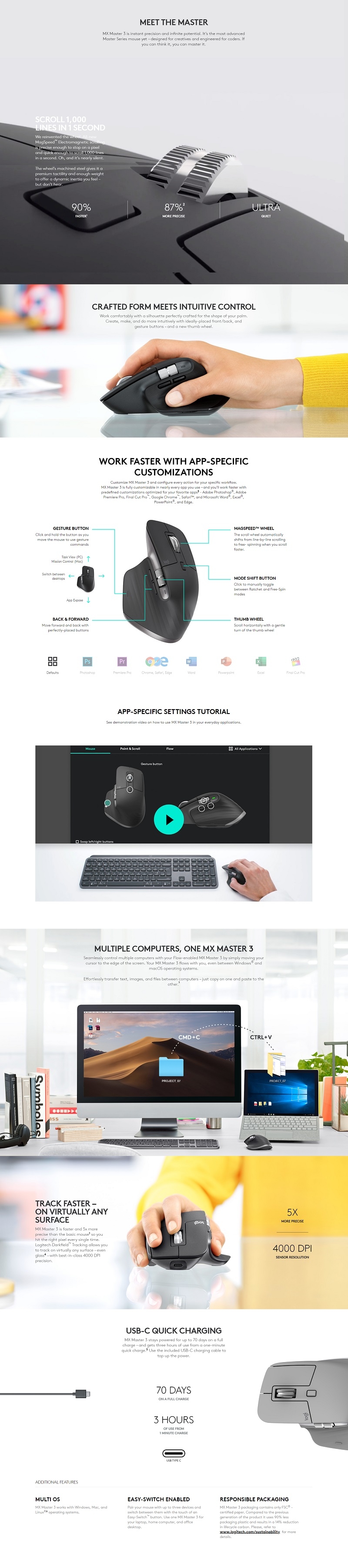 Logitech Mx Master 3 Advanced Wireless Mouse - Graphite (910-005698)