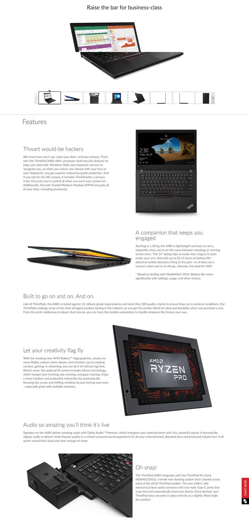 THINKPAD A485 14IN FHD RYZEN 5 PRO-2500U 8GB RAM 256GB SSD WIN10 PRO 1YRDP + LENOVO BAGPACK(4X40K09936)