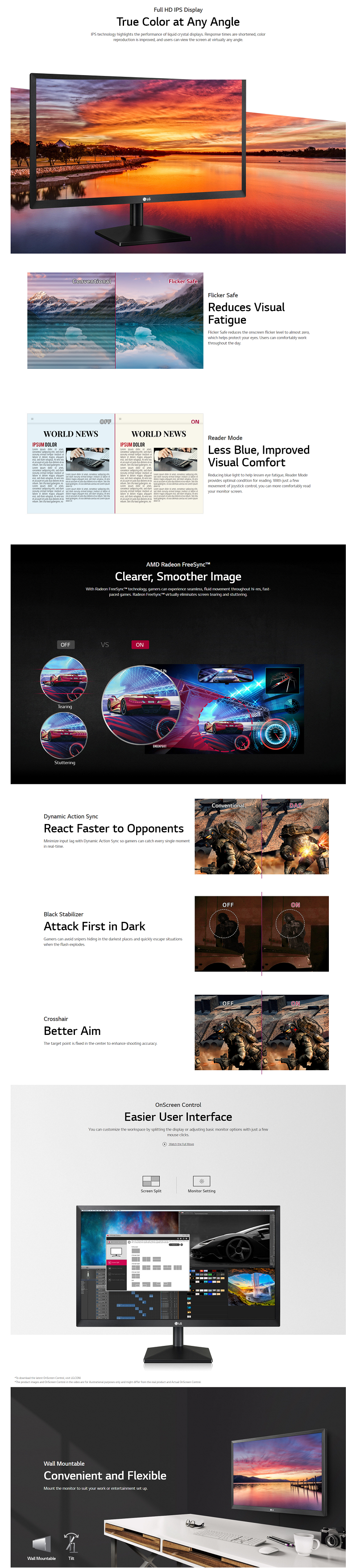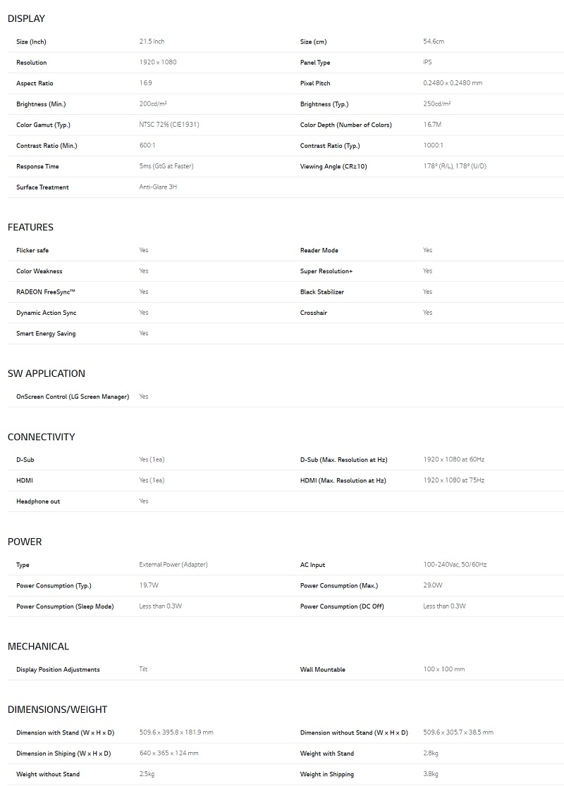 LG 21.5'' Full HD IPS Monitor with Radeon FreeSync™ 1920 x 1080, HDMI, D-Sub - Black (22Mn430M-B)