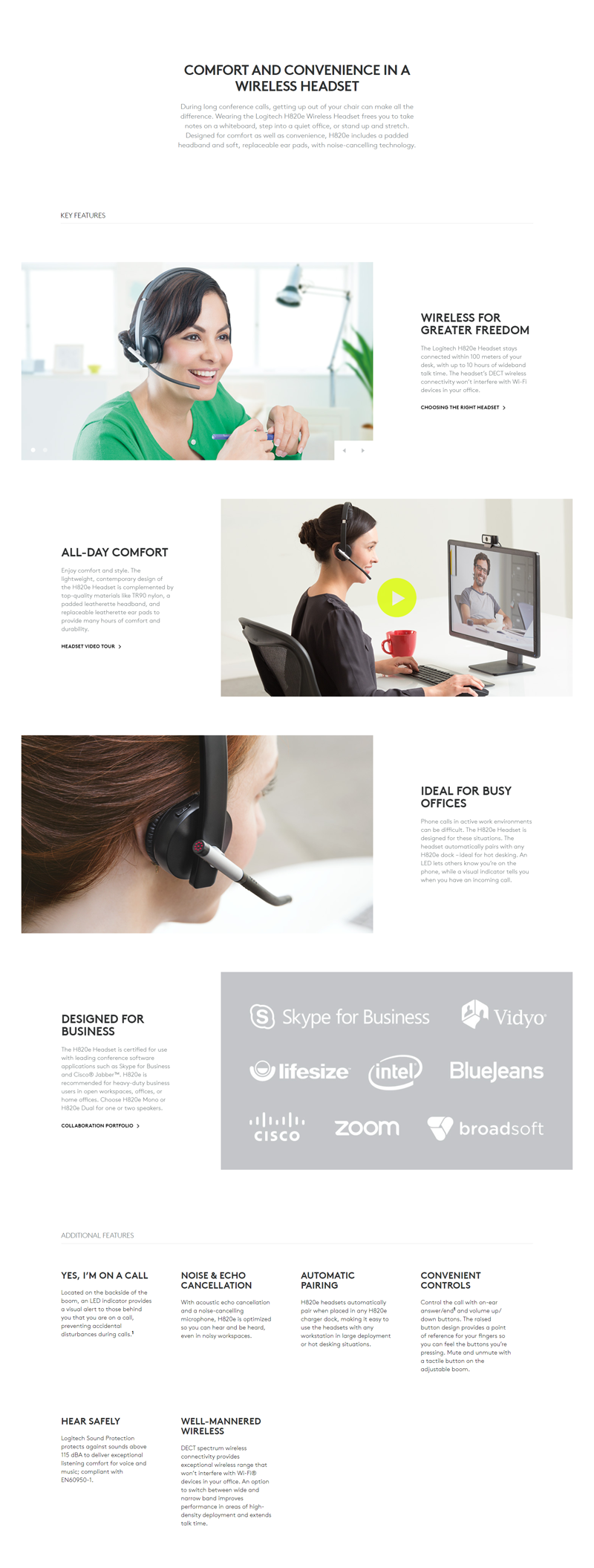 | Marketing Text | Wearing the Logitech H820e Wireless Headset frees you to take notes on a whiteboard, step into a quiet office, or stand up and stretch. Designed for comfort as well as convenience, H820e includes a padded headband and soft, replaceable ear pads, with noise-cancelling technology. |