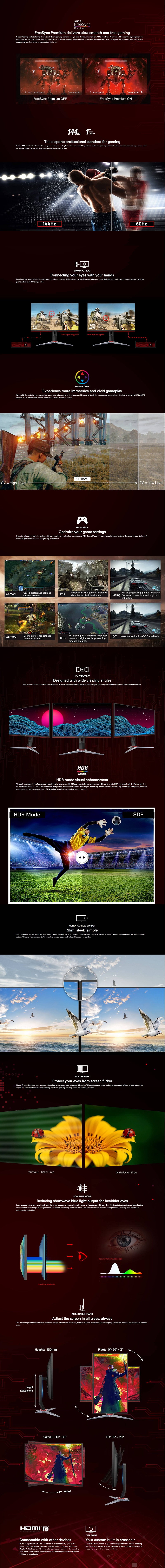 23.8" IPS LED Gaming Monitor: FHD 1920 x 1080, 144Hz 1ms, VGA/2*HDMI/DisplayPort, FreeSync, Height Adjust Swivel, VESA 100, Black/Red