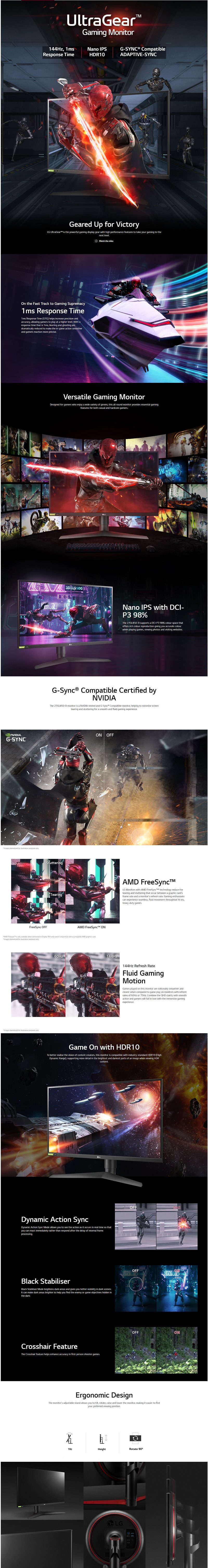 27" Nano IPS Gaming Monitor: 144Hz QHD 2560 x 1440 16:9, 1ms, 2x HDMI / 1x DP, USB, Tilt/Height Adjust, FreeSync / G-Sync Compatible, HDR10