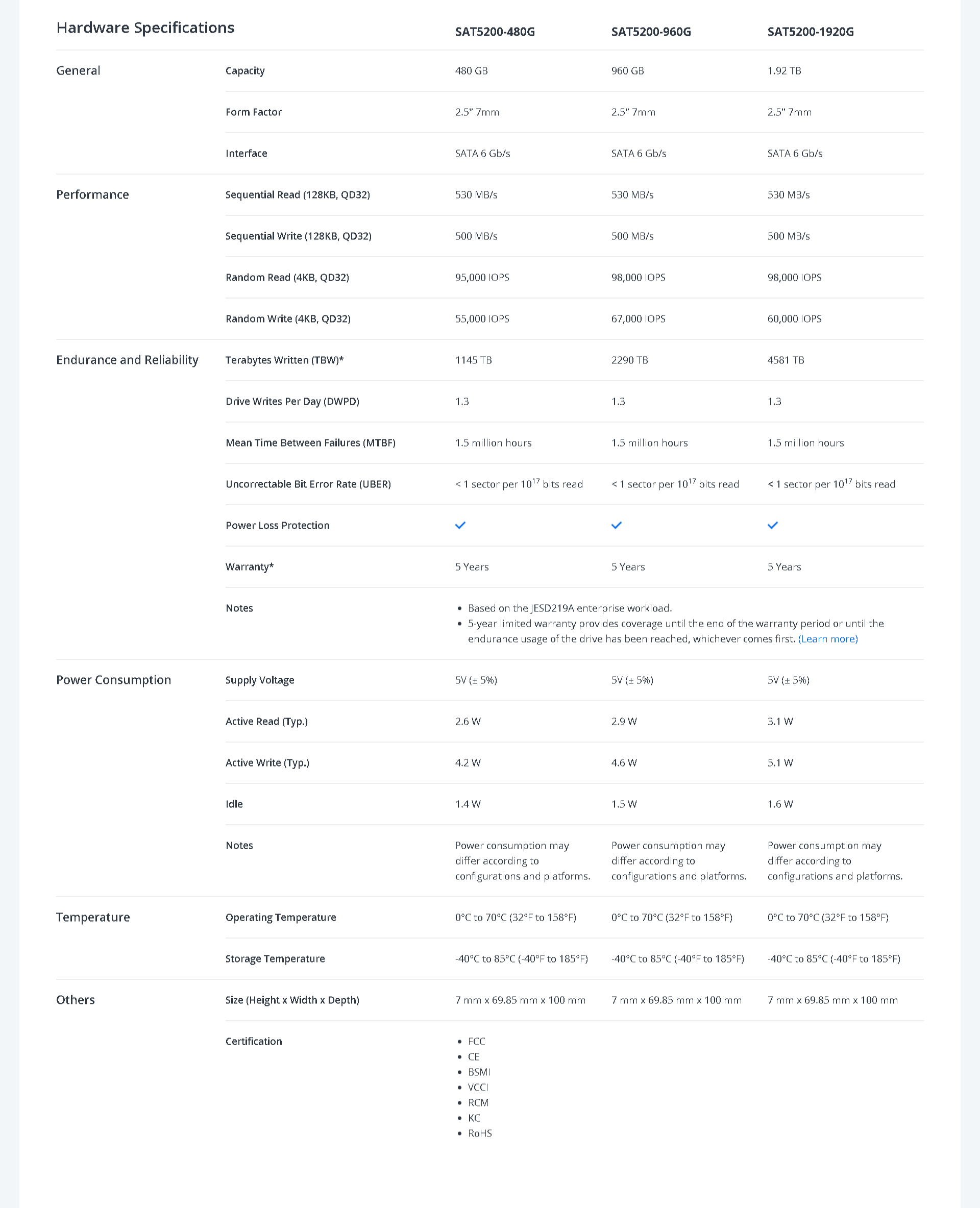 Synology SAT5200 2.5" SATA SSD -5 Year limited Warranty -1920GB - Check Compatible models Sat5200-1920G