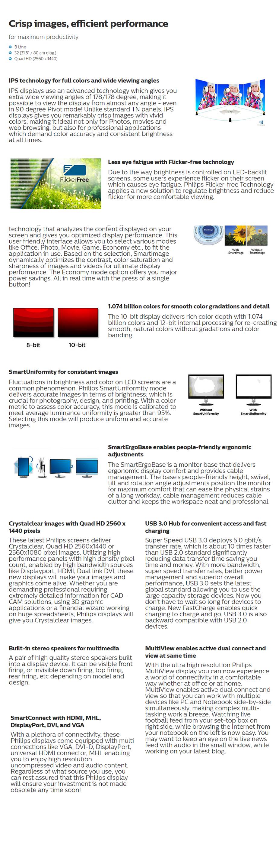 Philips 328b6qjeb 31.5in Qhd 2560x1440 5ms 50m:1 Ips Vga/dvi/hdmi/dp/mhl Usb3.0 Hub Pip/pbp Mode