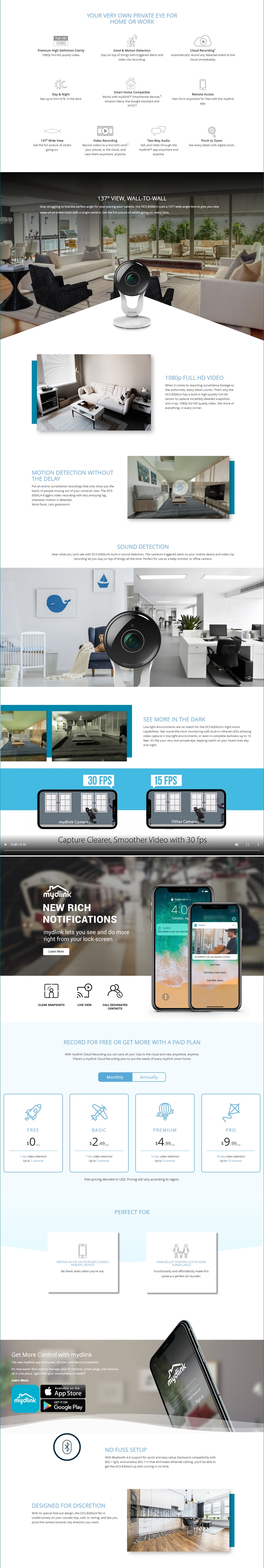 | Marketing Text | Stop struggling to find the perfect angle for your placing your camera. The DCS-8300LH uses a 137 degree wide angle lens to give you clear views of an entire room with a single camera. Get the full picture of what is going on, every time. View form anywhere for free with the mydlink app. |
