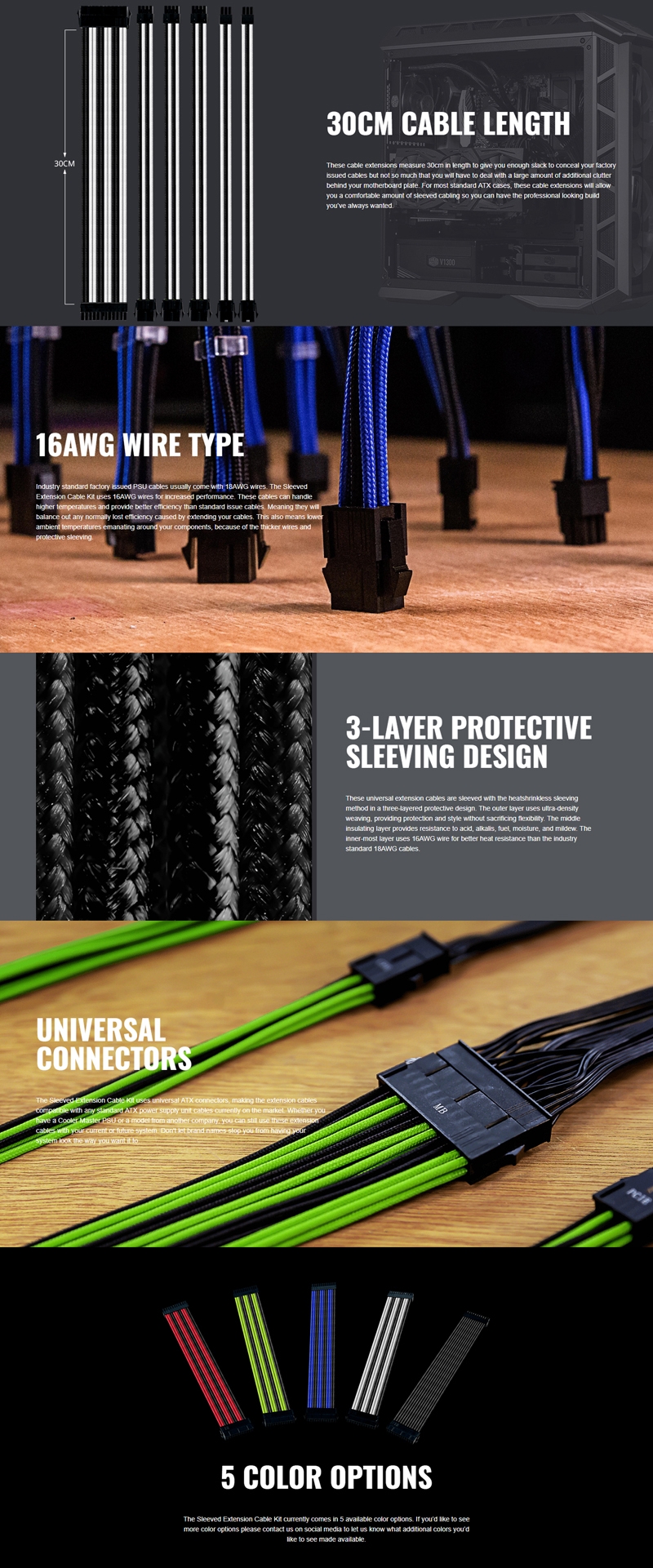 Cooler Master Blue/ Black Sleeved Extension Cable Kit Cma-Sest16Blbk1-Gl