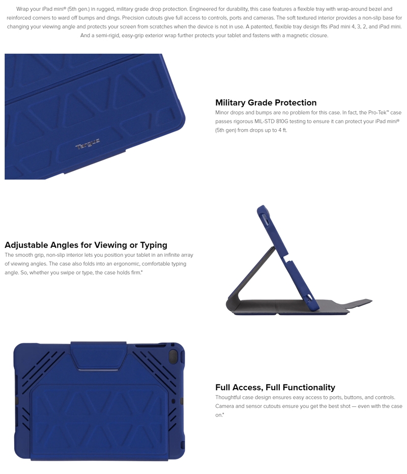 | Product Name: | Pro-Tek Case for iPad mini (5th gen.), iPad mini 4, 3, 2 and iPad mini (Blue) |