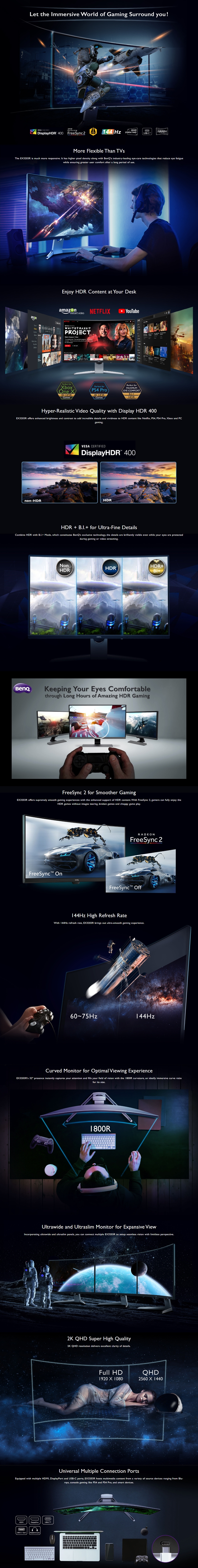 | Marketing Text | Featuring the leading HDR technology in a video enjoyment monitor, EX3203R, the 144hz curved gaming monitor offers enhanced brightness and contrast and adds incredible details and vividness to HDR video contents. EX3203R has passed the first HDR certification, and ensures optimal performance. |