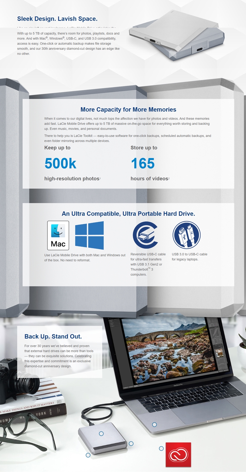 Lacie 2Tb Mobile Drive Usb-C Space Grey Sthg2000402