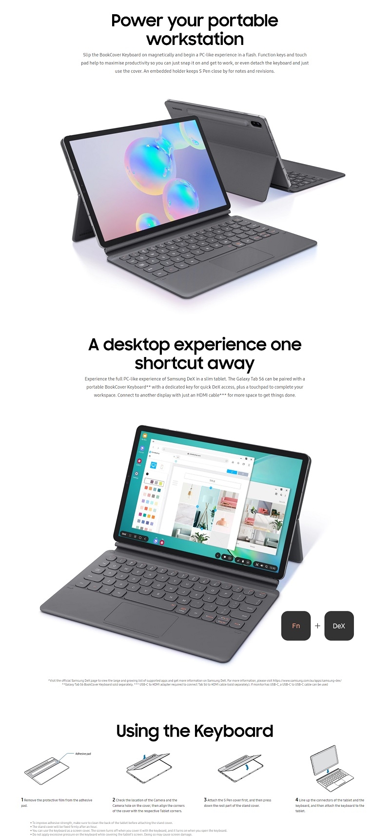keyboard book cover uses a dedicated key for quick DeX access. Connect to