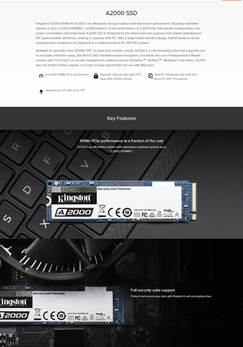 Kingston 500G A2000 M.2 2280 Nvme Sa2000M8/ 500G