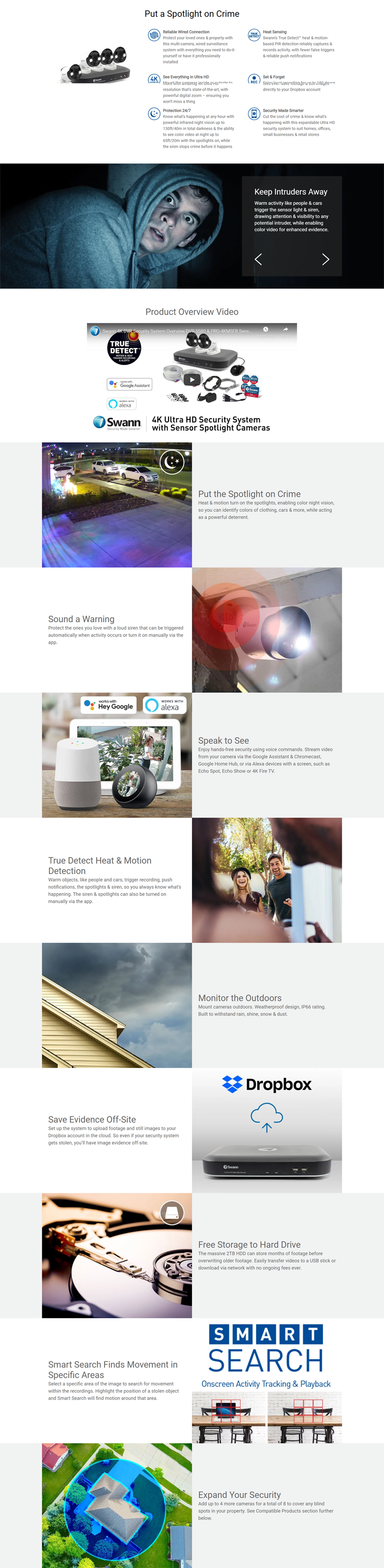 Swann DVR8-5580 4K / 2TB / 4X PRO-4KMSFB SPOTLIGHT CAMERAS SWDVK-855804FB-AU