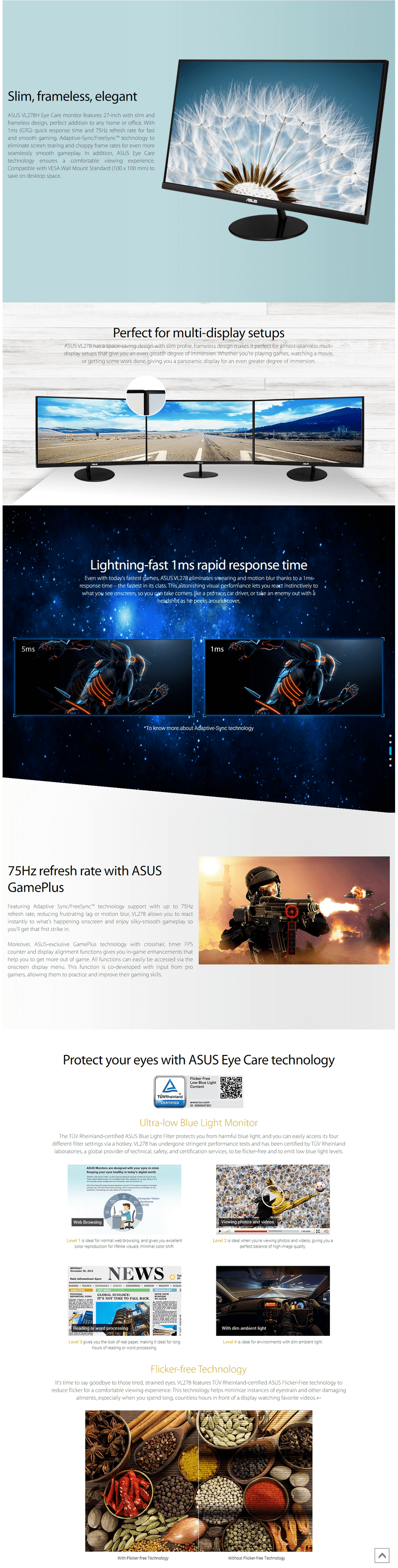 Asus VL278H Eye Care Monitor 27IN TN FHD 1920x1080 HDMI D-SUB 2X2W SPEAKERS