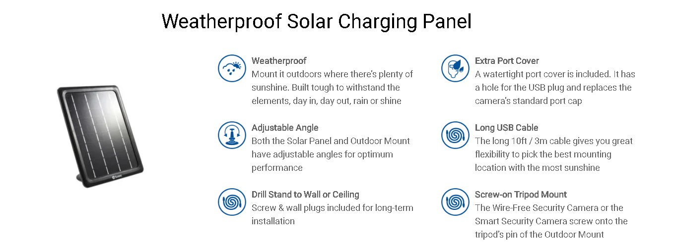 SWANN SOLAR PANEL + OUTDOOR CAMERA MOUNT FOR SWIFI-CAM WIREFREE CAMERA Swifi-Solar-Gl