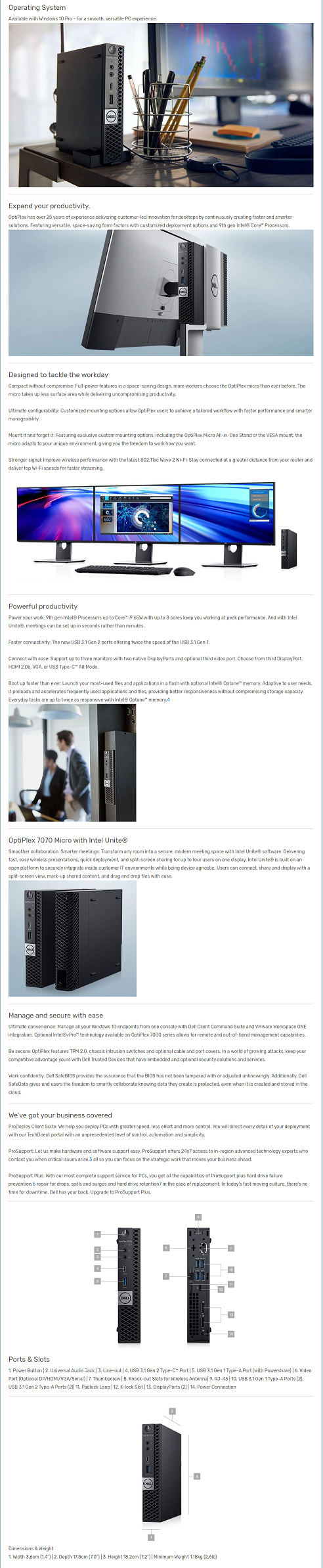 Dell OptiPlex 7070 MICRO I7-9700T 8GB 256GB(M.2-SSD) (KEYBOARD + MOUSE INCLUDED) TTM28