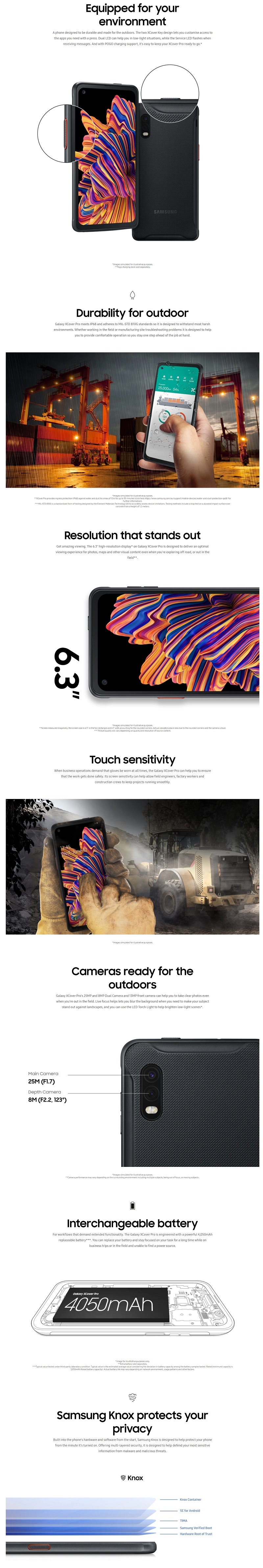 Cameras ready for the outdoors Galaxy XCover Pro's 25MP and 8MP Dual Camera and 13MP front camera take clear photos even when you're out in the field. Live focus lets you blur the background when you need to make your subject stand out against landscapes, and you can use the LED Torch Light to brighten low-light scenes.
