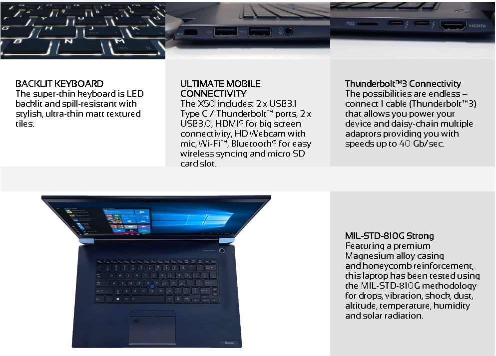 Toshiba TECRA X50-F I7-8565U 16GB DDR4 -2400MHZ 512GB PCIE SSD 15.6 FHD 1920X1080 TOUCHSCREEN WLAN, BT, SPEAKERS, WEBCAM, IR, CARD SLOT, USB-C Plr31A-1Cc001