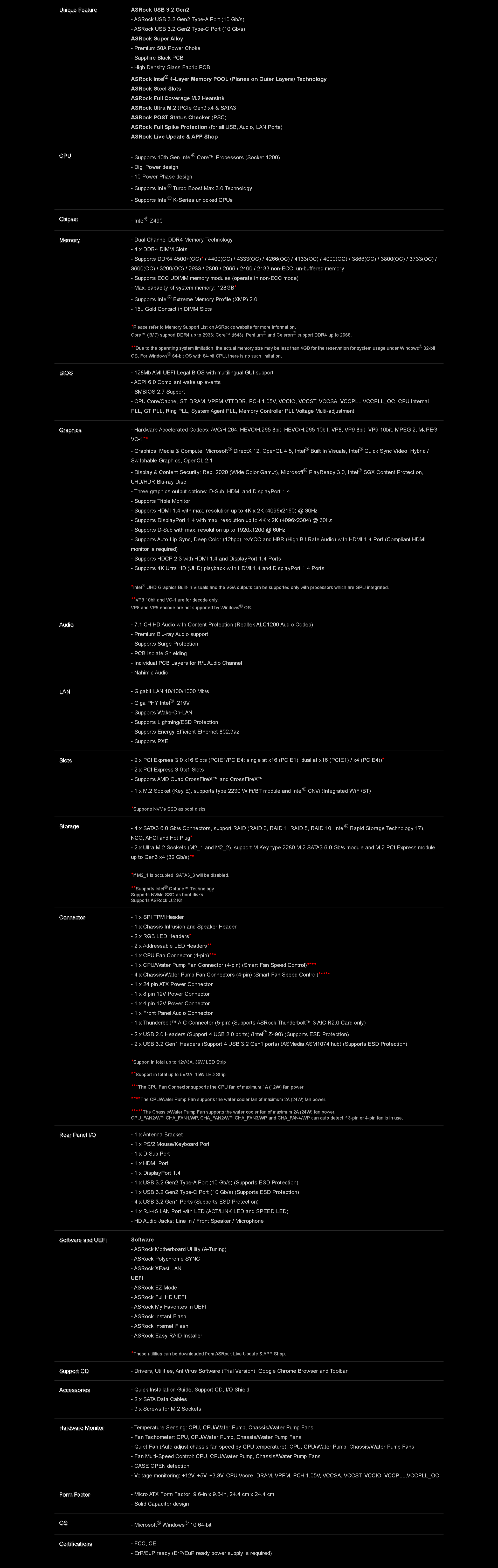 | MPN: | Z490M PRO4 Link |