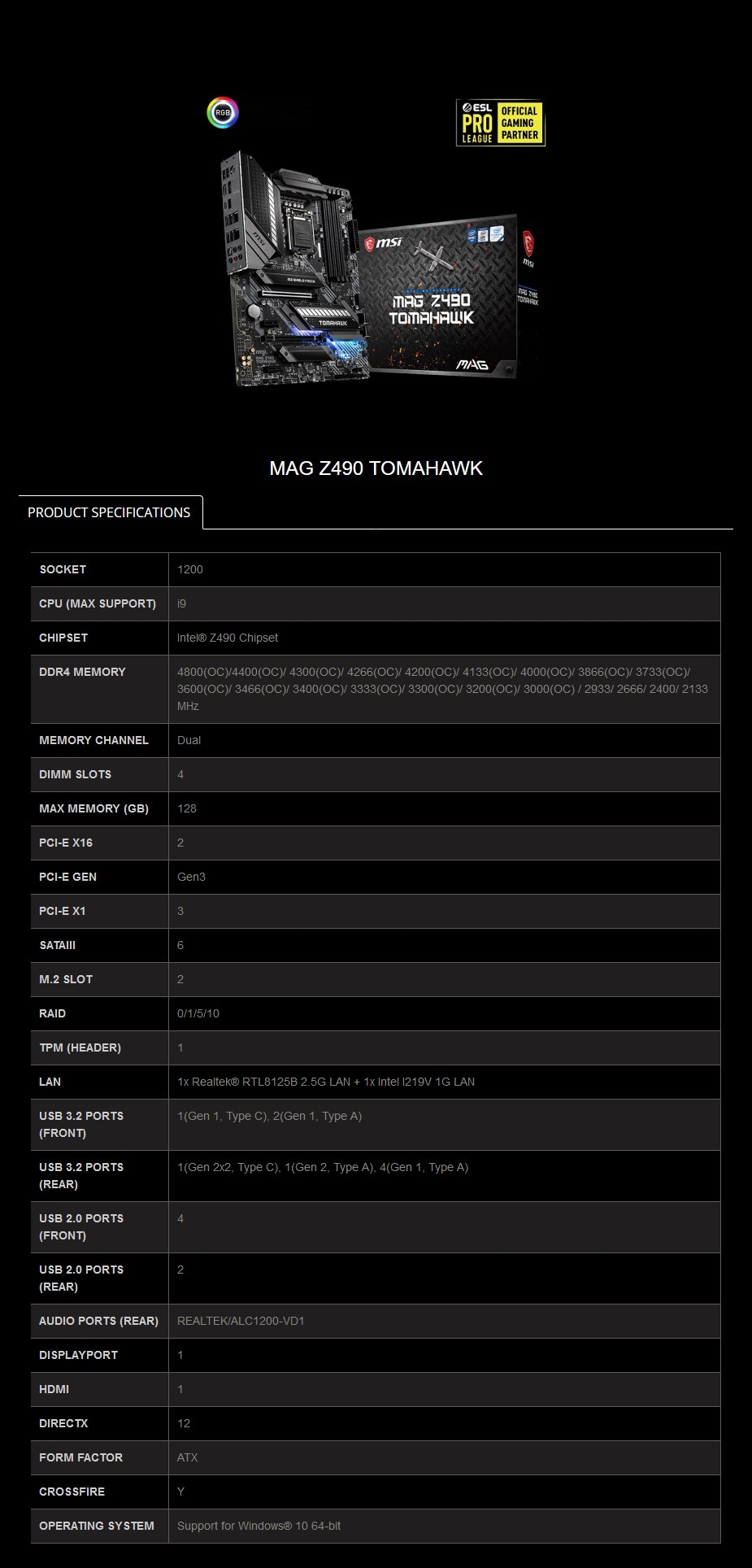 | MPN: | MAG Z490 TOMAHAWK Link |