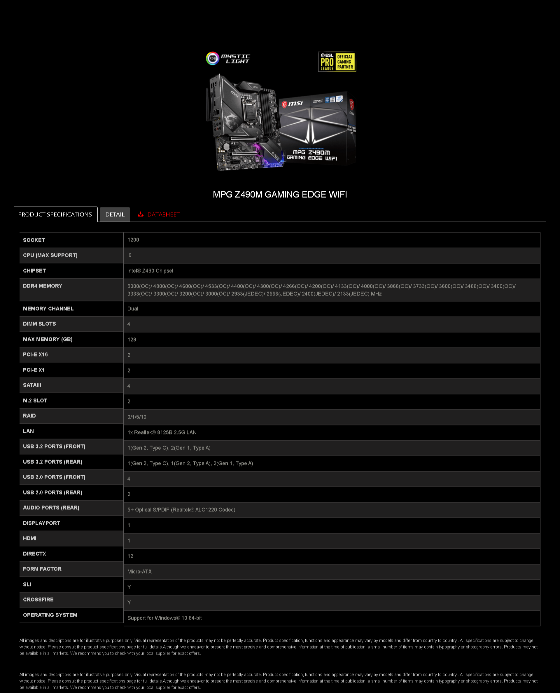 | MPN: | MPG Z490M GAMING EDGE WIFI Link |