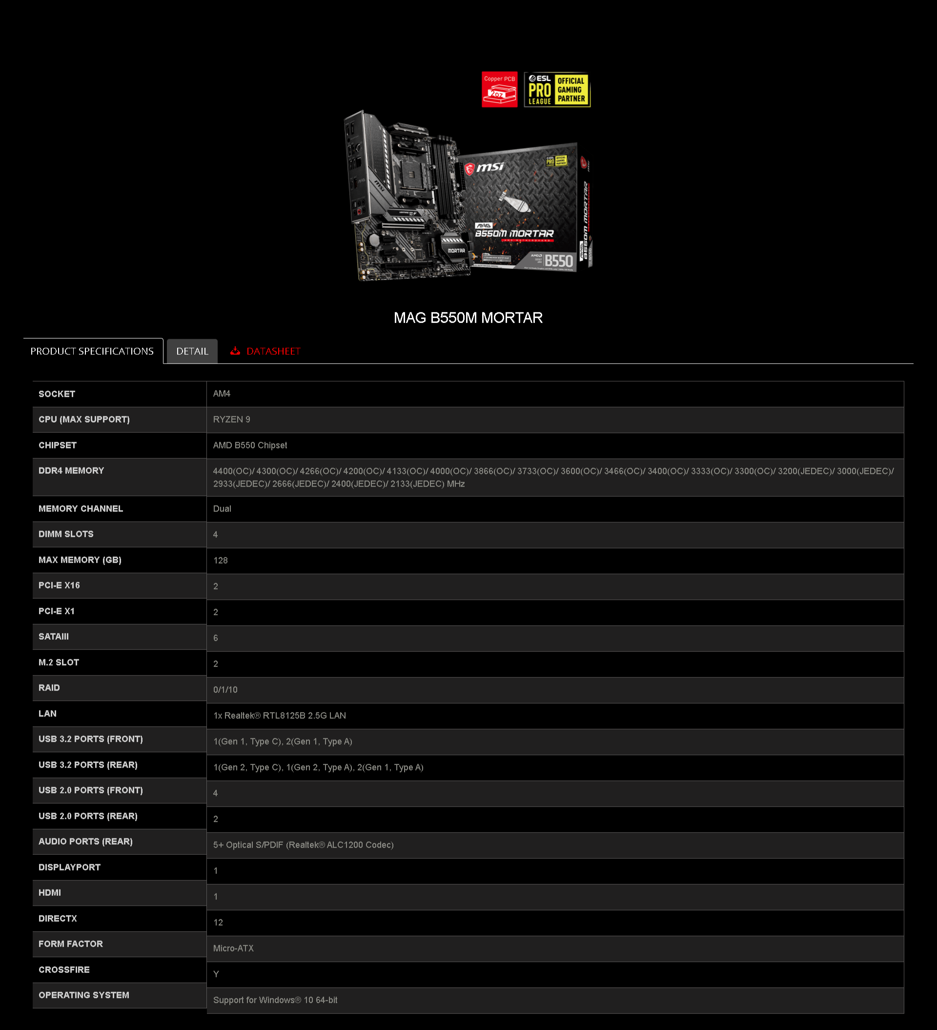| MPN: | MAG B550M MORTAR Link |