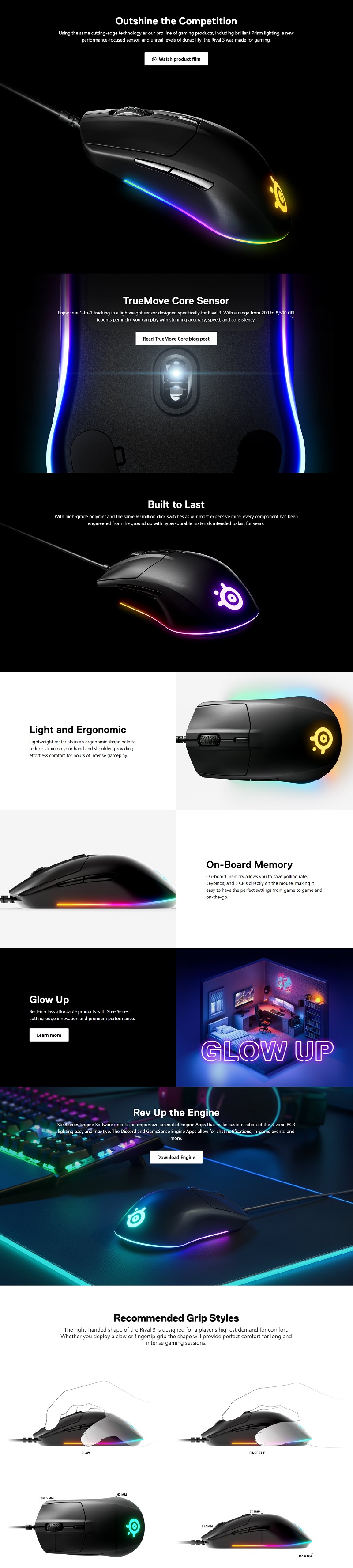 - TrueMove Core optical gaming sensor with true 1-to-1 tracking