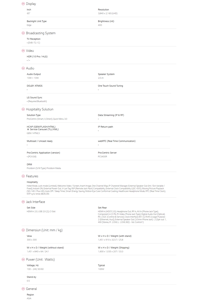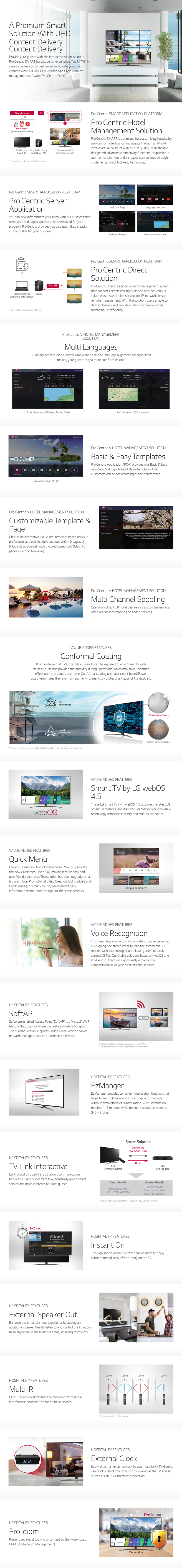 Lg Commercial Hotel (Ut761H) 65" Uhd Tv 3840X2160 Hdmi Lan Spkr Pro:Centric S/W 3Yr 65Ut761H