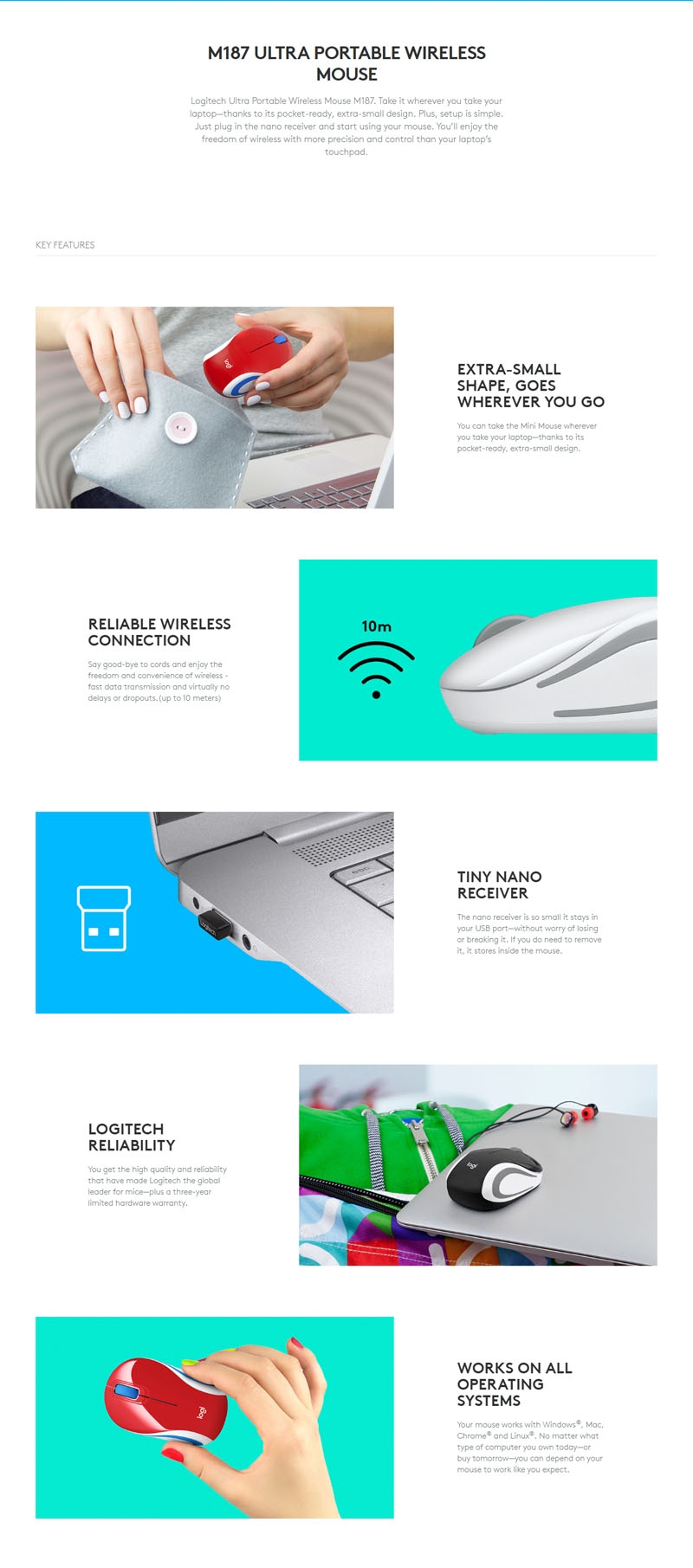 Logitech Wireless Mini Mouse M187 - Black 910-005371