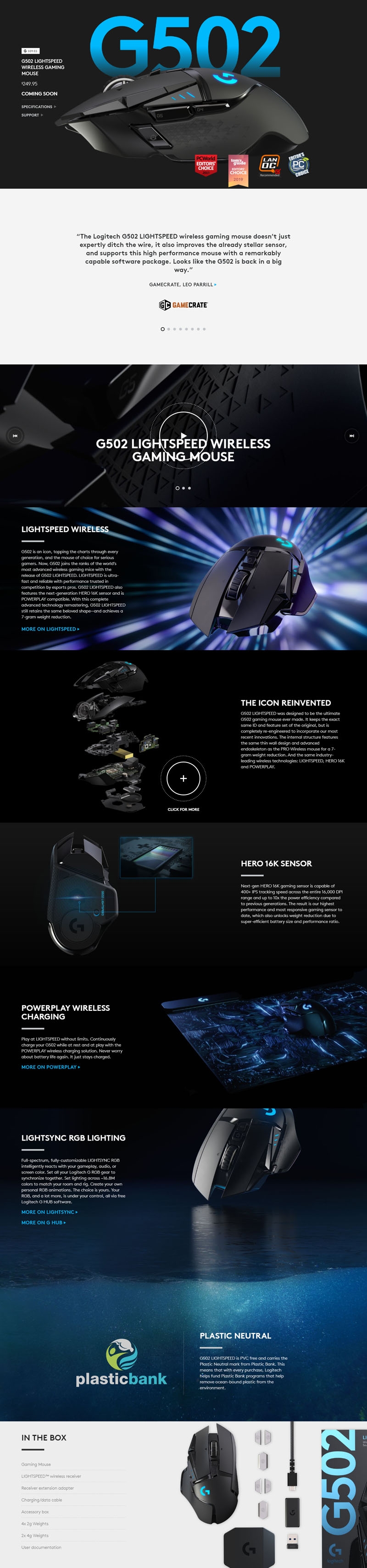 Logitech G502 Lightspeed Wireless Gaming Mouse - 2Yr Wty - Powerless Charging (Powerplay) 910-005569
