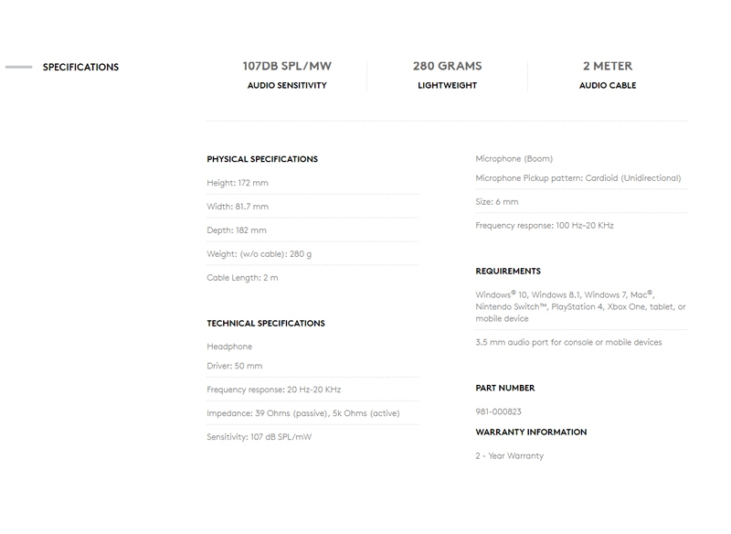 Logitech G332 Wired Gaming Headset Black 2 Yr Wty 981-000823
