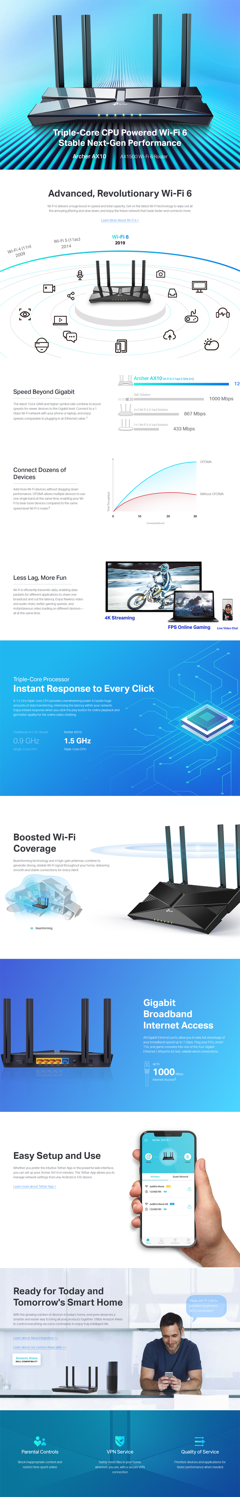 Tp-Link Archer Ax10 Next-Gen Wi-Fi Router Triple Core Cpu Ant(4) Lan (4) Archerax10