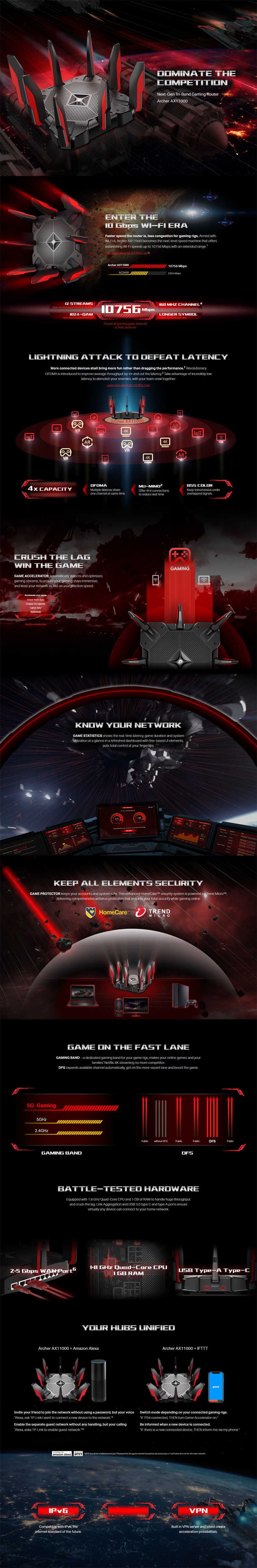 Tp-Link Archer Ax11000 Next-Gen Tri-Band Gaming Router Quad-Core Cpu Ant(8) Gbe(8) Lan Archerax11000