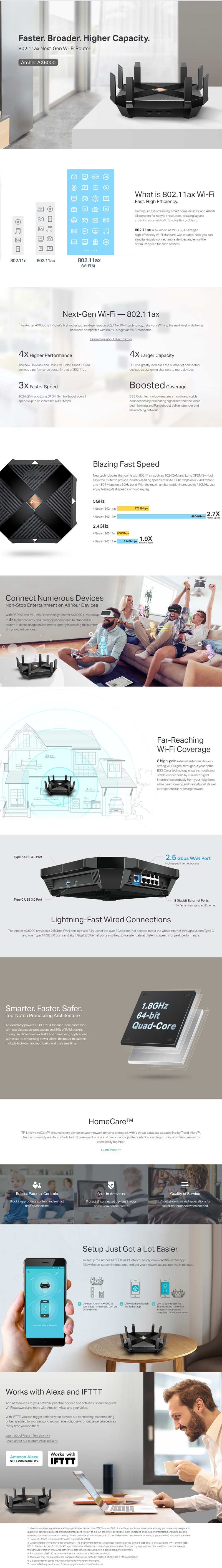 Tp-Link Ax6000 Next-Gen Wi-Fi Router Quad-Core Cpu Ant(8) Gbe(1) Lan (8) Usb 3.0(1) Us Archerax6000