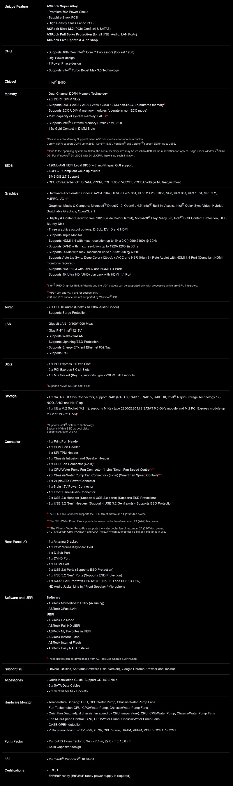 Micro-ATX Motherboard: B460 Socket 1200 For 10th Gen Intel Processors 2x DDR4, 4x SATA 6Gbps, 1x M.2, USB 3.2, Gigabit LAN, HDMI/DVI/D-Sub, Audio