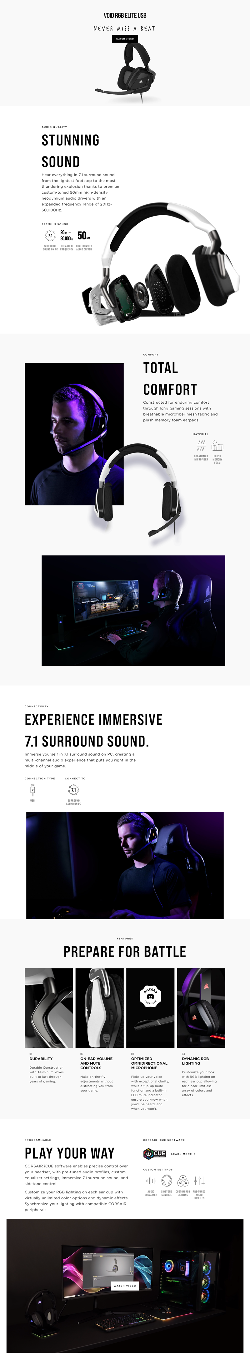 CORSAIR VOID RGB ELITE USB Premium Gaming Headset with 7.1 Surround Sound, Carbon