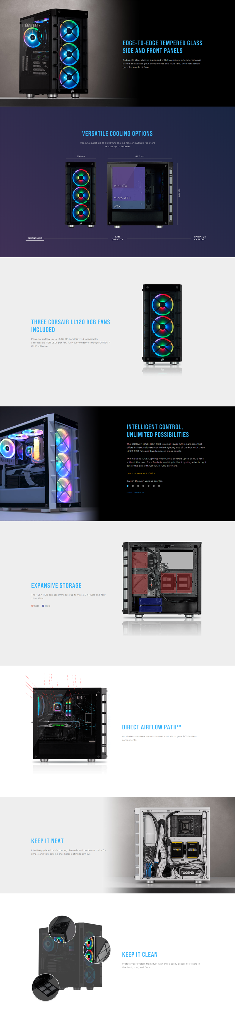 Corsair Icue 465X Rgb Black (Ll120 Rgb Fan) Mid-Tower Atx Smart Case V2 Cc-9011188-Ww