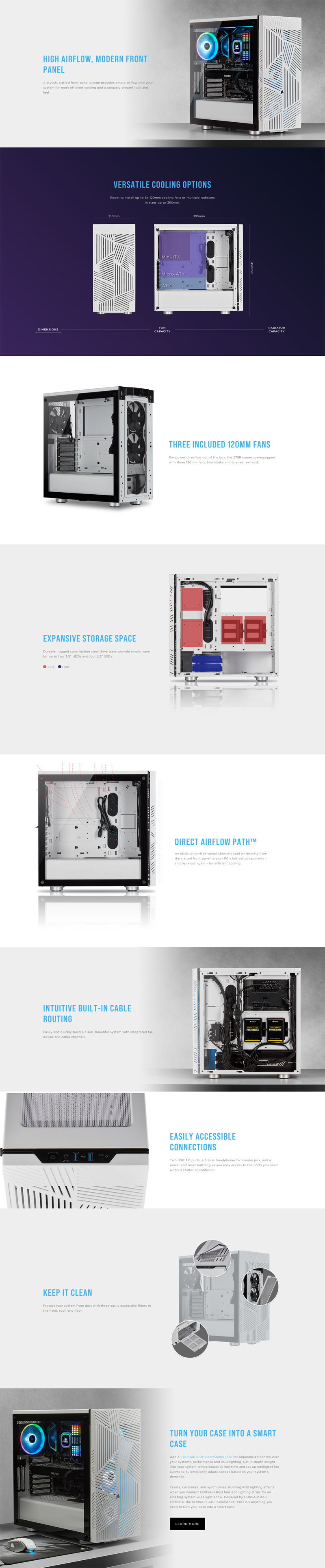 Corsair 275R Airflow Tempered Glass Mid-Tower Gaming Case — White Cc-9011182-Ww
