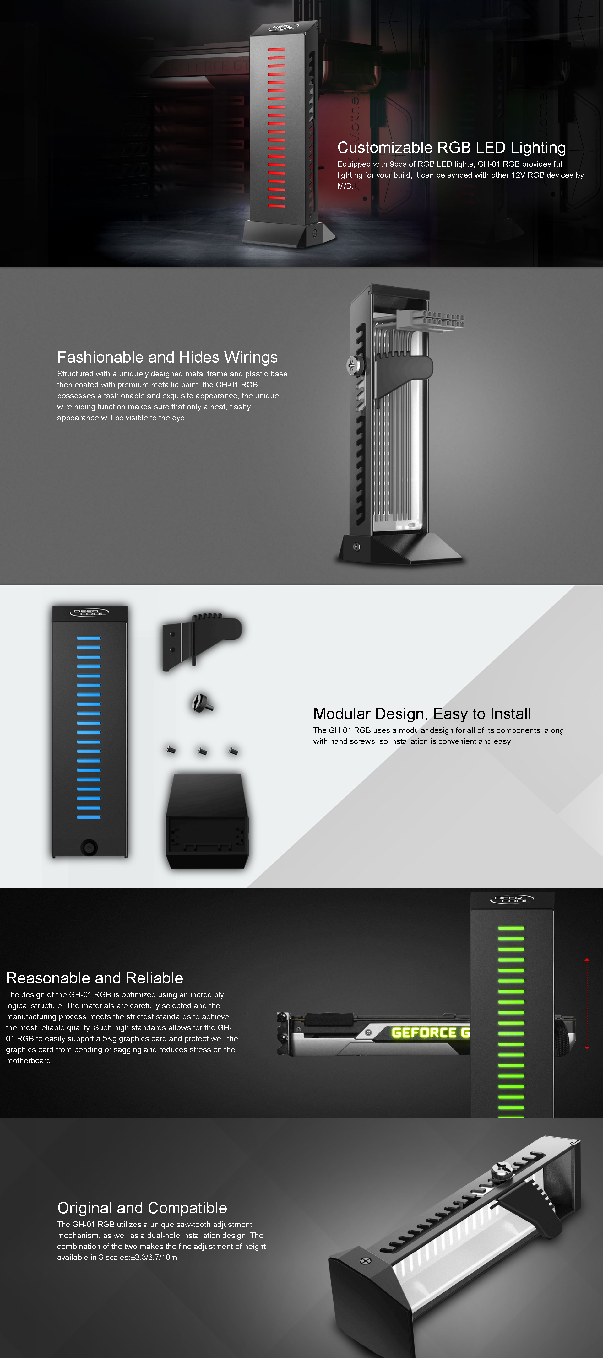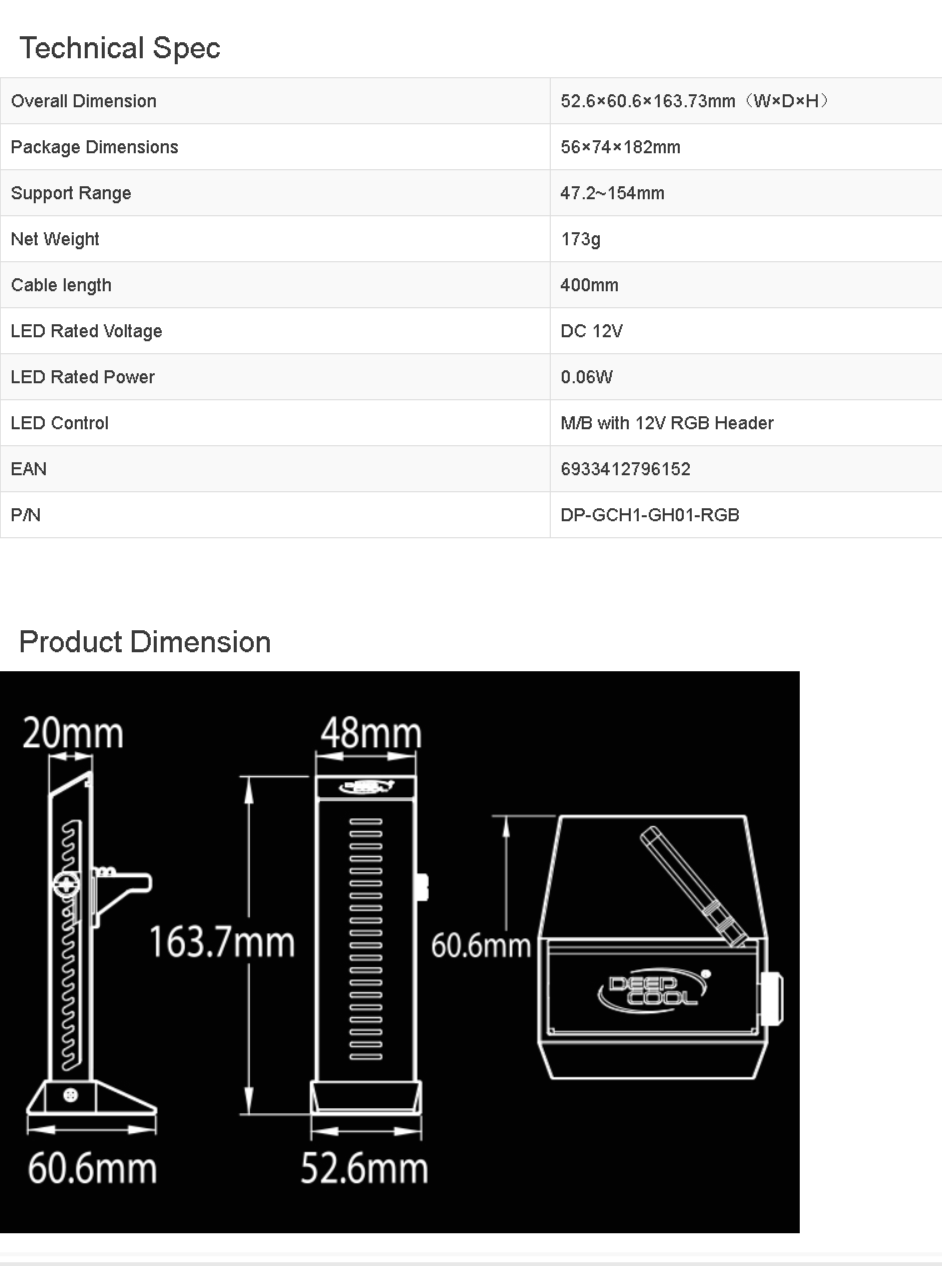 Deepcool GH-01 RGB Adjustable Internal Graphics Card Holder / Video Card Holder / VGA Card Holder DP-GCH1-GH01-RGB