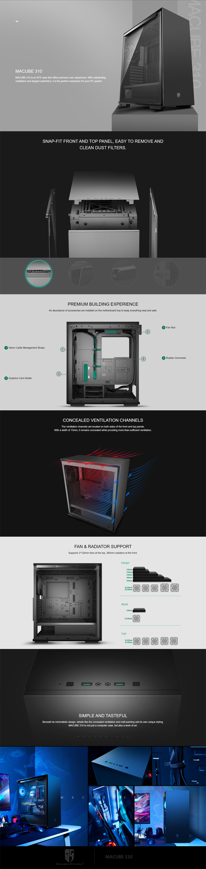 Deepcool Macube 310 Bk Tempered Glass Case Black Usb3.0*2 7+2 Slots Mini-Itx/Matx/Atx Macube 310 Bk