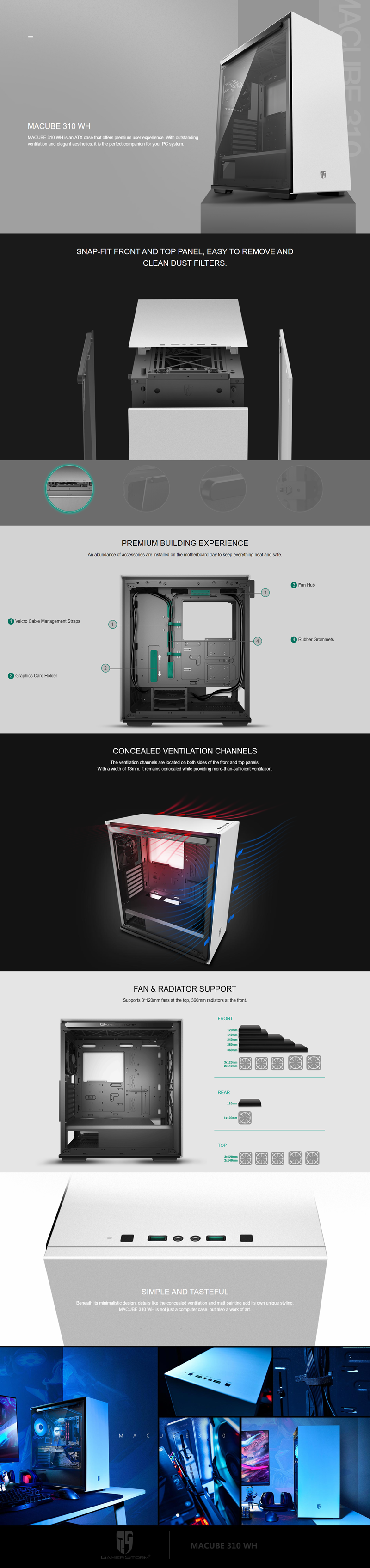 Deepcool Macube 310 Wh Tempered Glass Case Black Usb3.0*2 7+2 Slots Mini-Itx/Matx/Atx Macube 310 Wh