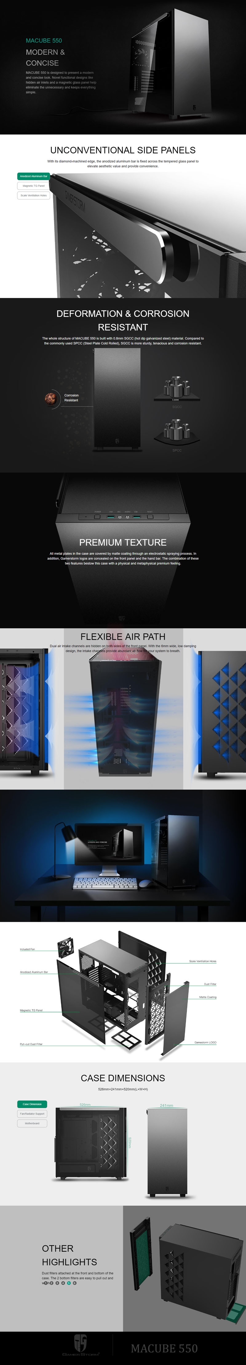 Deepcool Macube 550 Minimalist Full Tower Case Tempered Glass Side Panel Macube550 Bk