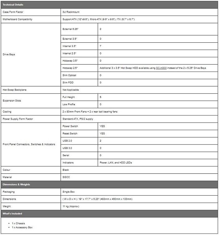 TGC Rack mountable Server Chassis 3U 450mm Depth, 2x Ext 5.25" Bays, 7x 3.5" Int Bays. 5x Full Height PCIE Slots, ATX PSU/MB Tgc-3450