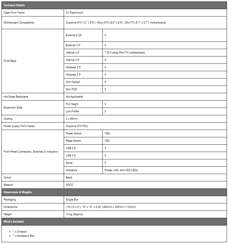 TGC Rack Mountable3U Short Depth Chassis With Aluminium Louver Front Up To 9 X 3.5" Hdd Tgc-3380