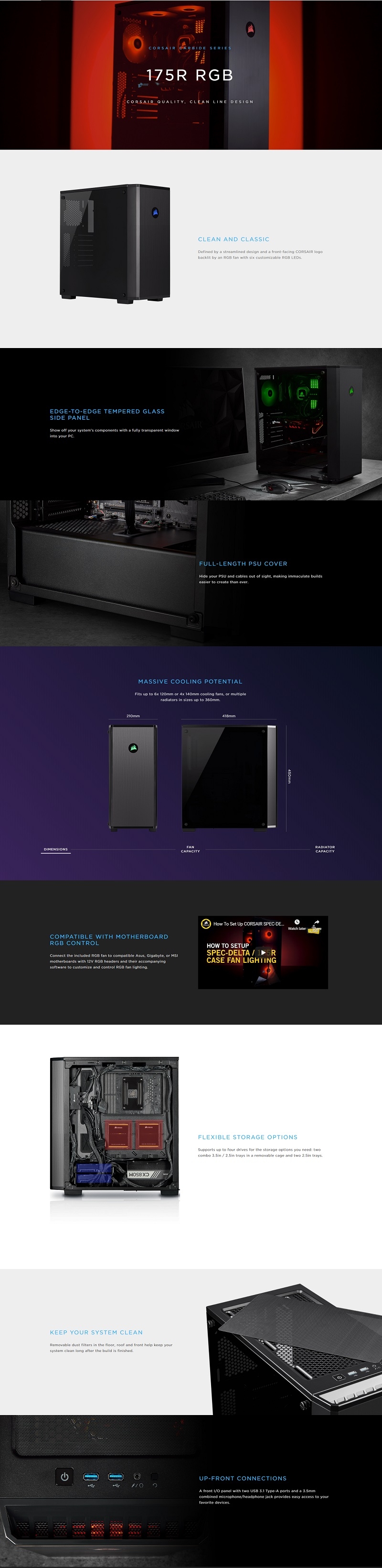 Corsair Carbide Series 175R Rgb Tempered Glass Mid-Tower Atx Gaming Case Black (Cc-9011171-Ww)