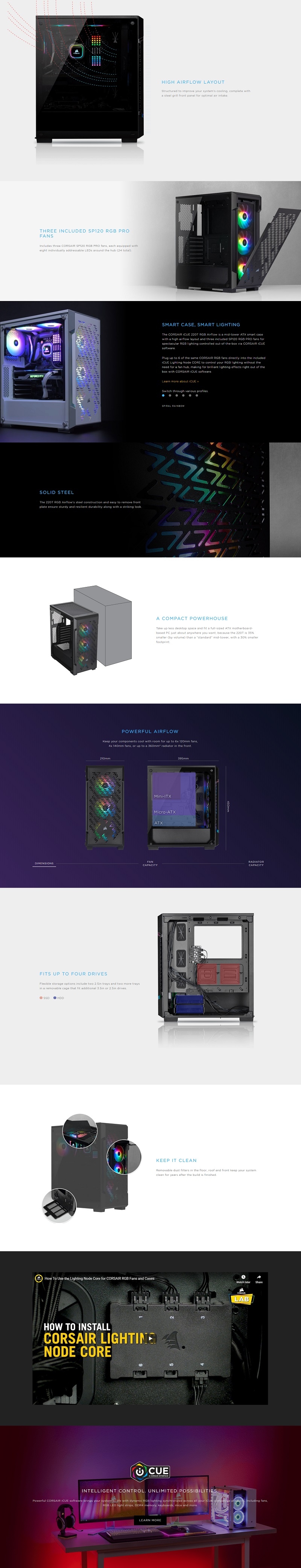 CORSAIR iCUE 220T RGB Airflow Tempered Glass Mid-Tower Smart Case, Black