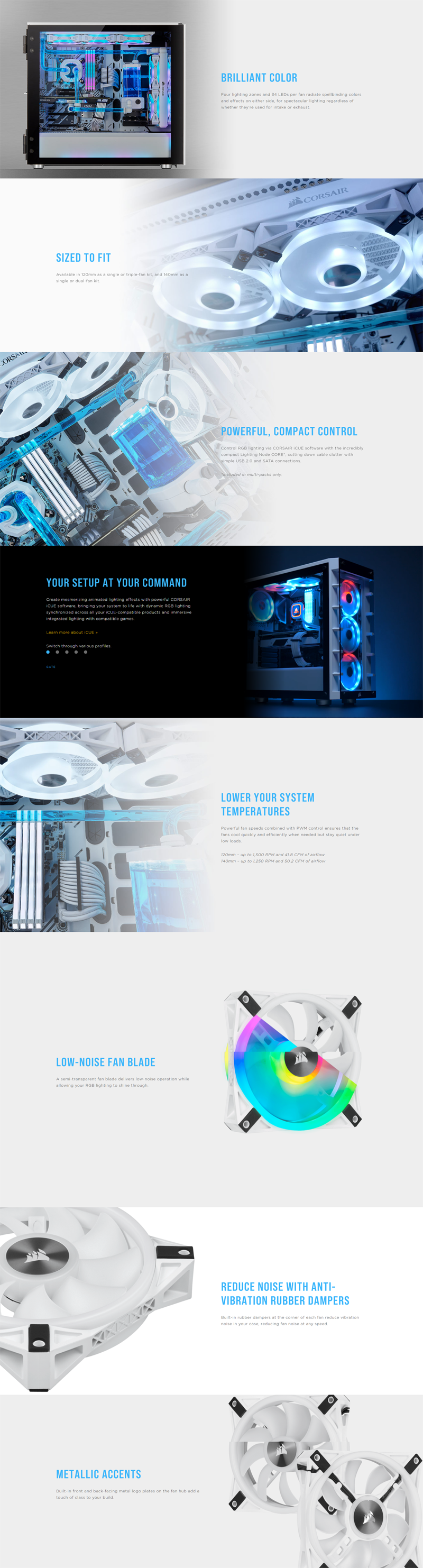 Corsair QL140 RGB White, ICUE, 140mm RGB LED PWM Fan 26dBA, 50.2 CFM, Single Pack CO-9050105-WW